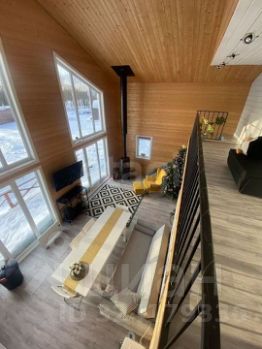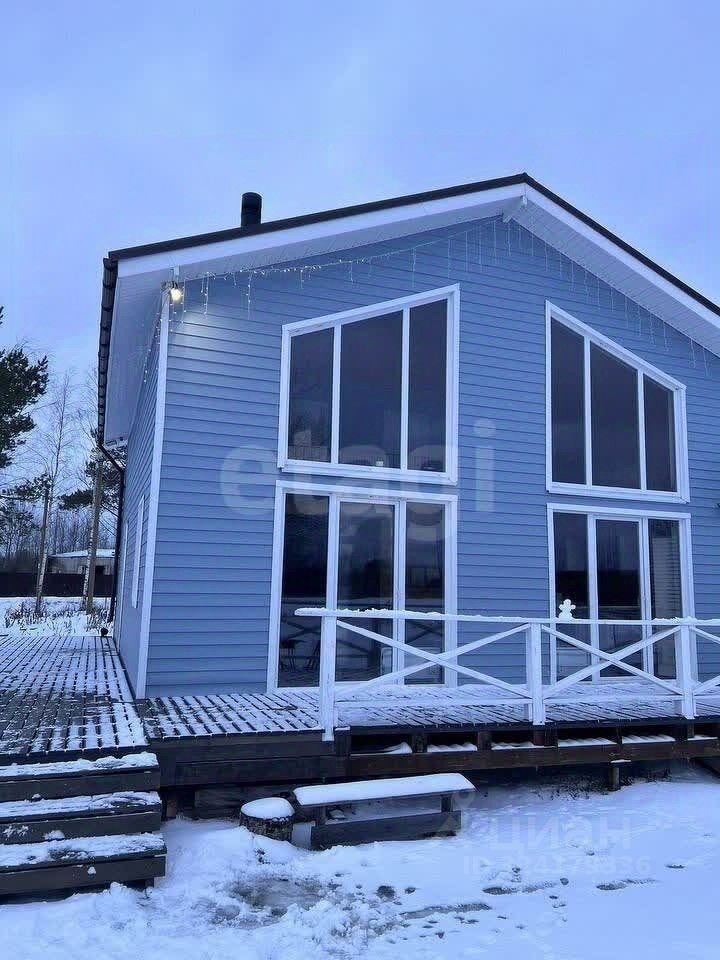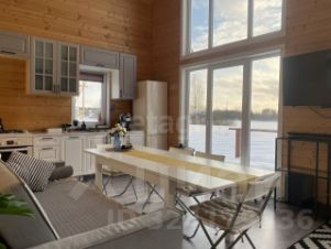 Двухэтажный коттедж площадью 110 кв.м расположен в живописной локации на берегу озера. Ключевой особенностью объекта являются панорамные окна в пол, открывающие вид на воду и наполняющие пространство естественным светом.