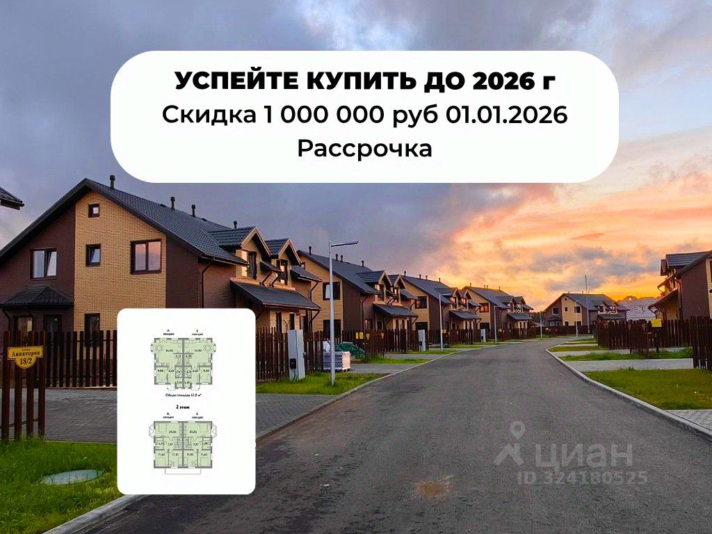 Скидка 1 000 000 руб 01.01.2026 Рассрочка. Готовый дуплекс 120 м² Ключи сразу! Все включено: центральные коммуникации в доме, участок, штукатурка — 10 км от СПб. Купить дом от застройщика. (не подходит под семейную ипотеку)