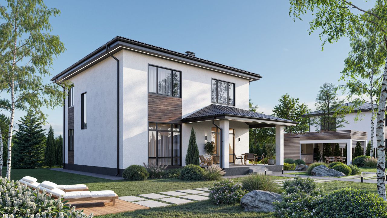 Сухой ровный участок 9,1 сот, на участке есть сосны. В доме большие панорамные окна, через которые солнце попадает почти в каждый уголок дома.