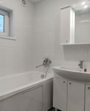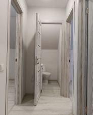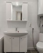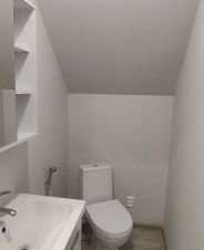 - В санузле 2 этажа разведена сантехника под ключ (установлены: унитаз, тумба с раковиной, подвесной шкаф);