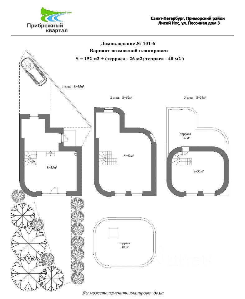 Трехэтажный дом (3 надземных этажа) с двумя террасами (над 2 и 3 этажами) с уютным замкнутым солнечным патио предоставляет большие планировочные возможности внутри дома, а также с возможности по озеленению и благоустройству патио и террас (размещение садов на крыше).