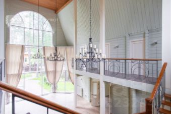 Во всем доме сделана приточно-вытяжная вентиляция (Swegon CASA) с функцией рекуперации. В отделке использованы натуральные материалы: лиственница, бук. Теплые водяные полы. Радиаторы и конвекторы Zender. Перила лестницы и люстры выкованы под заказ. Сверхпрочные двухкамерные стеклопакеты толщиной 50 мм с аргоном, главным качеством которого является энергоэффективность (теплоизоляция, шумоизоляция, защита от ультрафиолета).