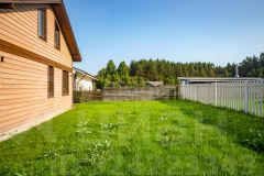 На участке есть зона барбекю с детской площадкой. Участок обработан, растут сосны и туи.