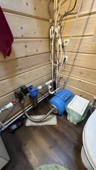 Дом оформлен как жилой (возможна постоянная прописка). В доме одна жилая комната, полноценный санузел и дровяная баня. Фактически это большая комфортная баня с возможностью постоянного проживания одного или двух человек. В дом заведено три фазы электричества в сумме 15 кВт (прямой договор с Ленэнерго), вода из своей скважины глубиной 25 метров, отопление - электроконвекторы плюс печь парной. Горячая вода подогревается в бойлере в санузле, также на чердаке установлен бак обьемом 500 литров для постоянного обеспечения теплой водой.