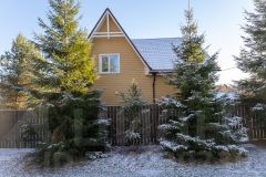 Планировка включает в себя веранду-прихожую, кухню-гостиную с камином(40кв.м.), два с/у, котельную, кладовую и четыре спальни. Высота потолков первого этажа 2,7м.
