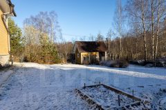 УЧАСТОК 10,54 сотки, отмежеван, огорожен по периметру. Есть небольшой перепад. Участок сухой! Почти на всем участке хороший плотный газон, исключение - садовый уголок. Есть теплица и садовые посадки: смородина, крыжовник, слива, орешник, яблони, малина. По периметру растут красивые лиственные и хвойные деревья. Из дополнительных построек - сарай. Участок находится в конце тупиковой улицы.