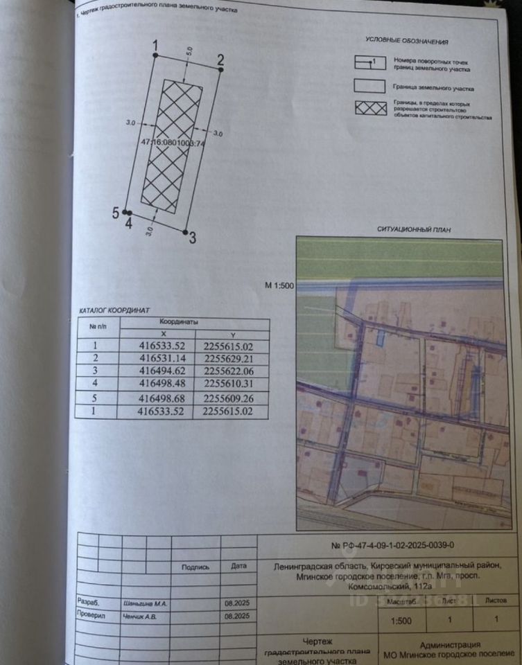 Межевание есть(границы участка обозначены), градостроительный план на строительство дома от администрации получен(по запросу необходимые документы смогу направить)