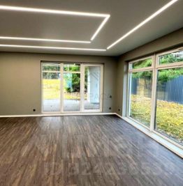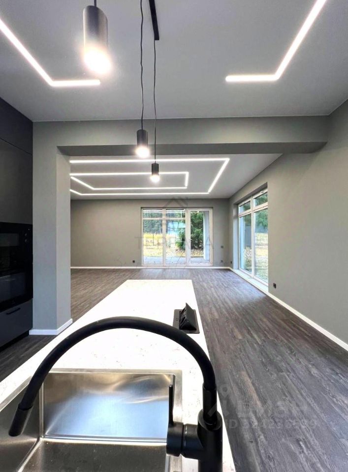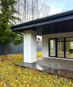 Просторная кухня-гостиная с выходом на стильную крытую террасу