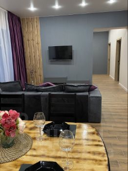 Просторная светлая гостиная-кухня с выходом на террасу.