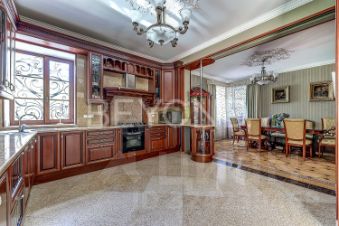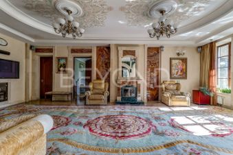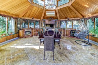 Основной дом: на первом этаже расположена кухня-столовая, полностью меблирована и оснащена техникой Miele и Liebherr, гостиная с каминной зоной, мастер-спальня с выходом в зимний сад.