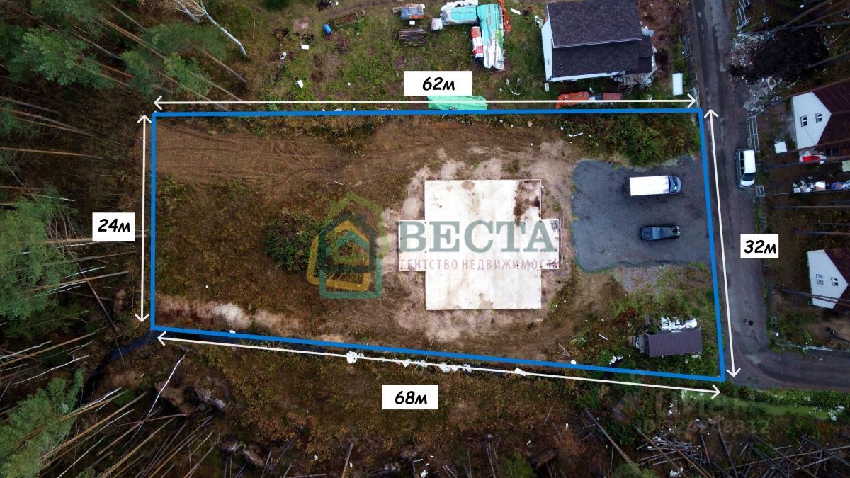 Участок сухой, ровный и угловой, с двух сторон окружен лесом.
