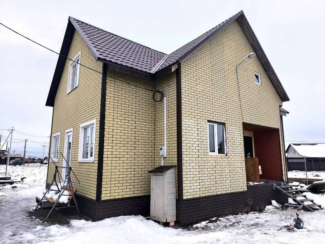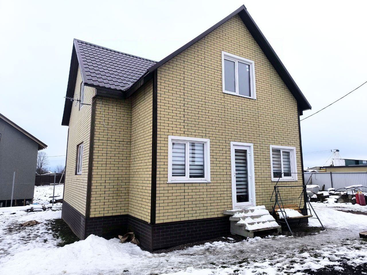 Фасад закрыт фасадной ЦСП плитой под кирпич.