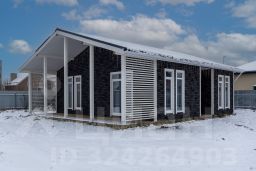 Этот дом выделяется на фоне большинства объектов в Гатчинском районе и Ленинградской области: Одноэтажный каркасный дом на монолитном фундаменте. Плита 300мм.
