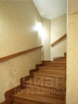 Межэтажная лестница имеет пологие невысокие ступени, расчитанные на длину шага, отделана деревом.