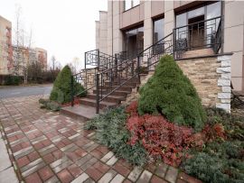 Таунхаус имеет четыре этажа, парадный вход с закрытой лоджией, небольшим садиком и местом для отдыха, закрытый теплый гараж на два машино -места, уличную парковку на четыре машины, личную зеленую зону для отдыха и барбекю во внутреннем закрытом дворе.