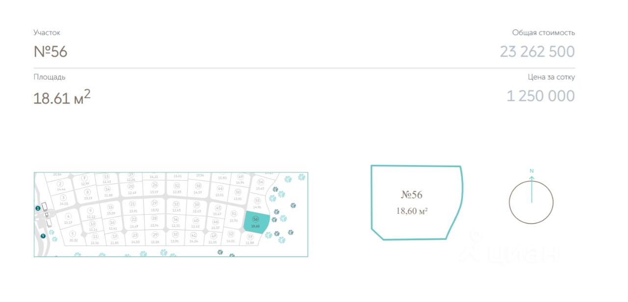 Участок 56: Площадь 18.6 соток.