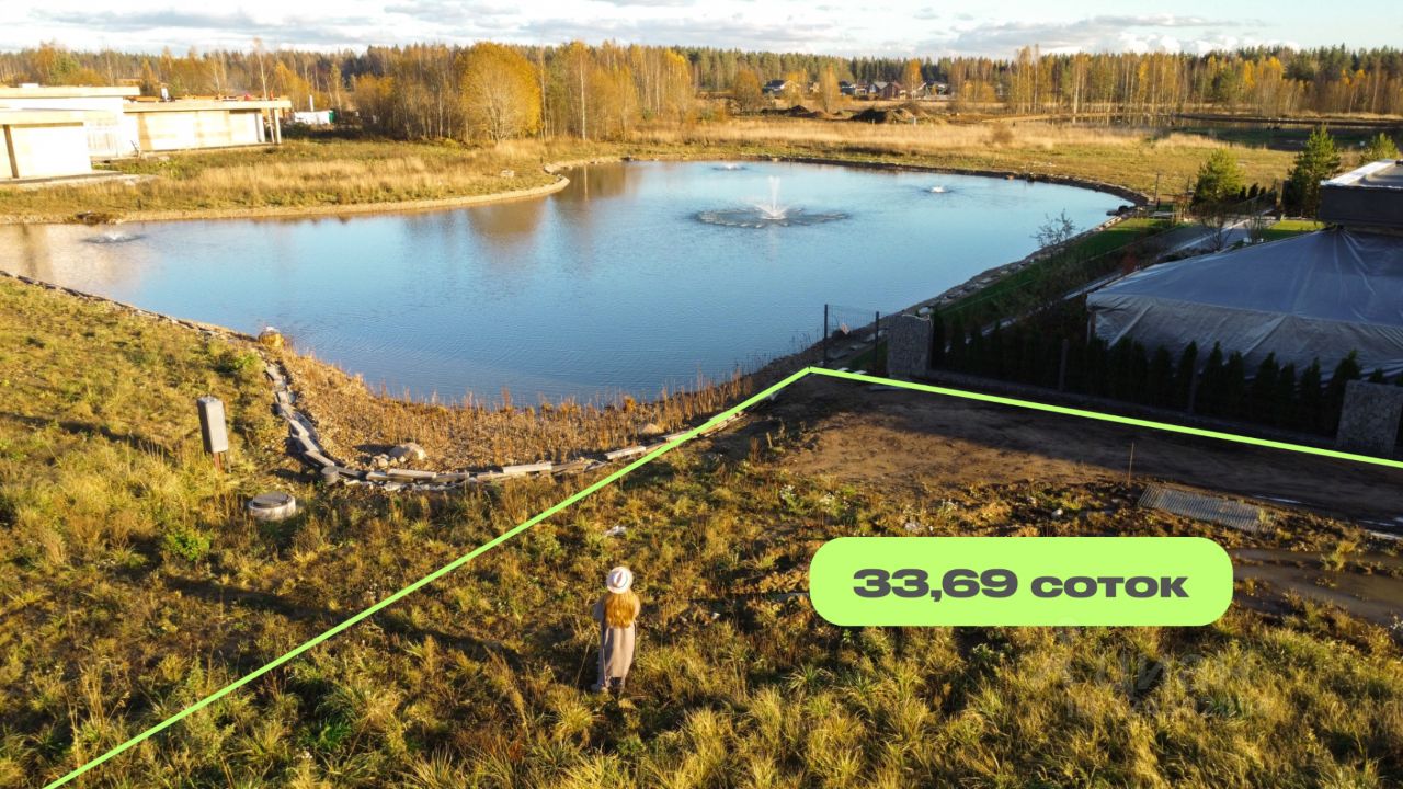 Продаётся просторный участок площадью 33,69 сотки во второй очереди элитного клубного поселка "Репинское" на берегу камерного озера - место, где ценят комфорт, стиль и уединение.