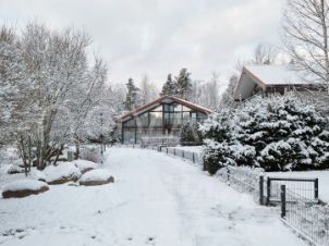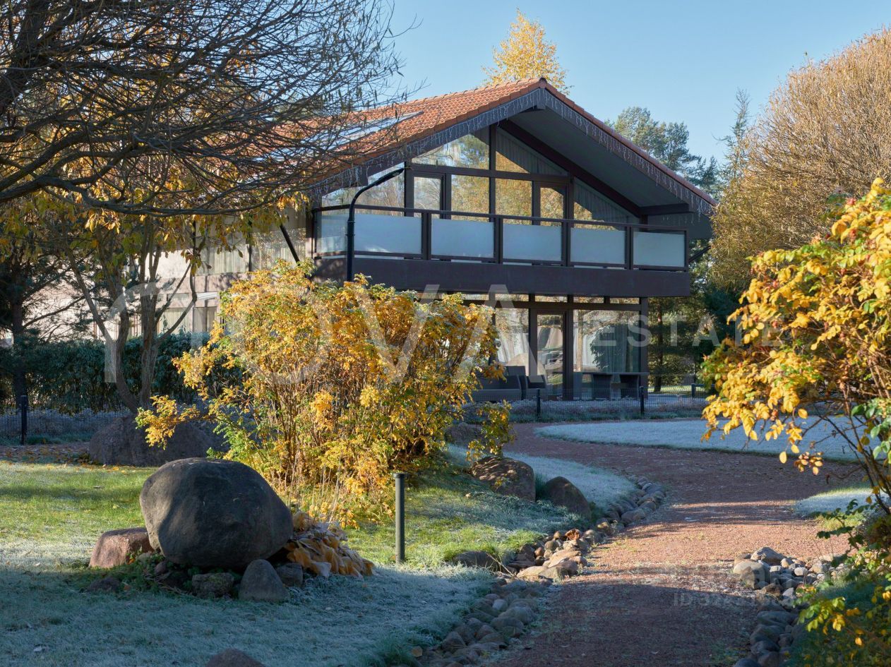 Архитектура дома сочетает строгие геометричные линии с тёплой натуральной отделкой и панорамным остеклением. Просторные интерьеры дают возможность индивидуальной планировки: до 4-хспален, большая кухня-гостиная, мастер-блок с гардеробной и ванной комнатой, помещения для отдыха, спортзона, винная комната или кабинет. Каждая зона продумана для максимального комфорта и уединения.