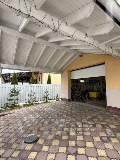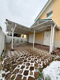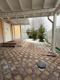 Внутренняя отделка: 1-й этаж — кафель, 2-й этаж — ламинат. В доме остается кухонный гарнитур и частично техника: посудомоечная машина, холодильник, газовая плита и вытяжка.