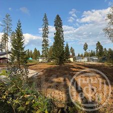 6 соток, сделан въезд с откатными воротами, установлен забор по периметру, газон.