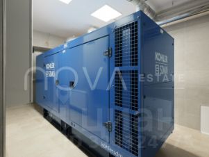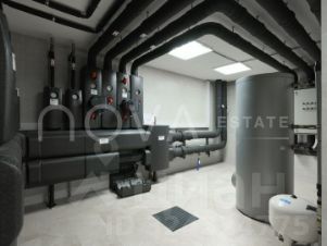 Полностью жилой, с отделкой и мебелью. В цоколе — две автономные спальни с санузлами, комната отдыха и котельная. Первый этаж: крытый гараж на два авто, помещение охраны, диспетчерская, кухня, столовая, зона отдыха, две спальни и два санузла. Второй этаж: кухня-столовая, две спальни и два санузла.