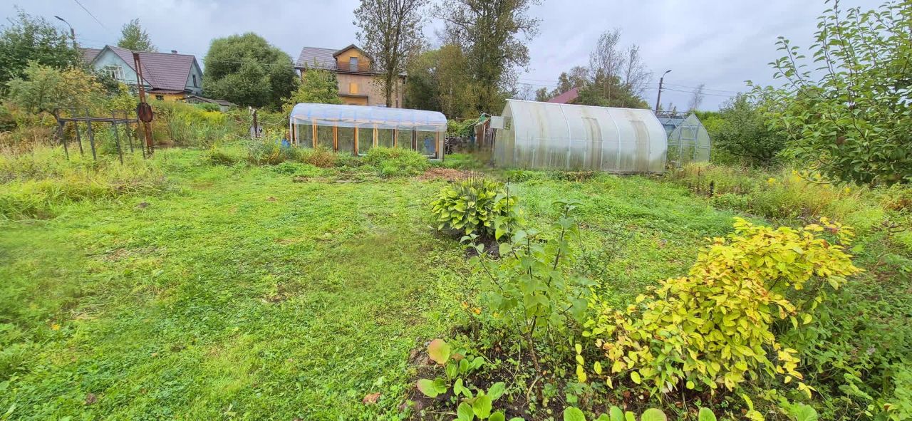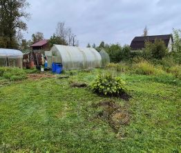 Ровный участок, асфальтированная дорога. На участке - плодовые деревья и кустарники, небольшая теплица (поликарбонат, без фундамента). Закрытая территория, прекрасные соседи.