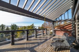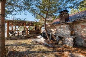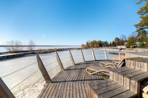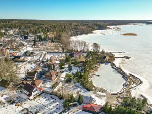 Фундаментальный дом, в котором можно проживать со всеми удобствами круглый год построен из кирпича и имеет панорамные виды на воду и остров Лисий из 90% помещений.