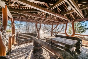 - Русская баня с закрытой зоной отдыха и выходом к подогреваемой дровяной купели, которая располагается на берегу искусственно созданной рыбной запруды, которая зимой превращается в закрытый каток.