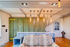 - Огромную светлую гостиную с камином, бильярдом, домашним кинотеатром и выходом на солнечную террасу (вид на залив)