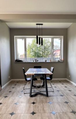Просторная кухня с окном и выходом на террасу - в эркере уютная обеденная зона на 6-8 персон.