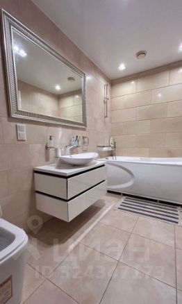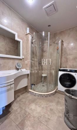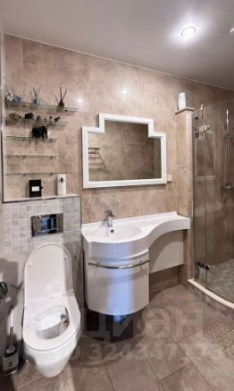 Санузел - на полу и стенах керамогранит, одна стена облицована мрамором - итальянская сантехника и мебель.