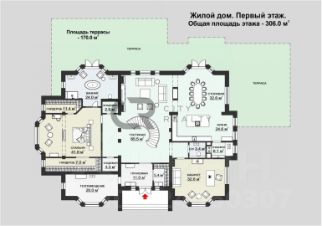 Площадь: 540 кв. метров основной дом и 250 кв метров второй дом со вспомогательными помещениями.