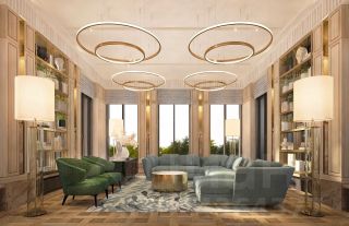 Концепция объединяет принципы Фрэнка Ллойда Райта — органичную связь с ландшафтом и открытые пространства — с безупречной флорентийской школой в деталях и материалах.