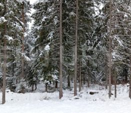 Участок: 12 соток среди зелени вековых елей и сосен, в абсолютной тишине и спокойствии.