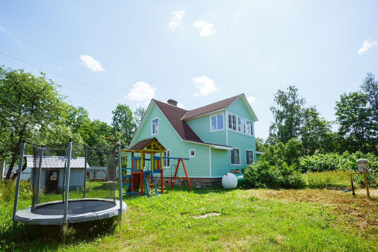 Есть площадка и домик для игр детей, так же оставляем батут и тенисный стол.
