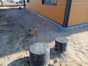 По периметру дома сделан кольцевой дренаж (Soft Rock), ливневая канализация с выходом в сточный колодец, а также контур заземления.
