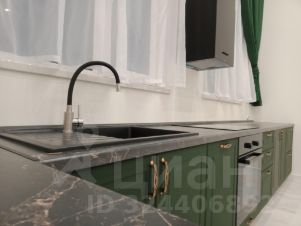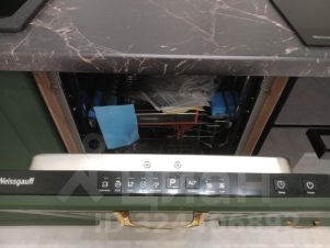 Кухня полностью скомплектована бытовой техникой (посудомоечная машина, индукционная варочная панель, духовка, вытяжка, мойка, холодильник).