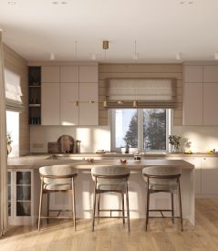 - Светлая кухня-гостиная с панорамным порталом на террасу