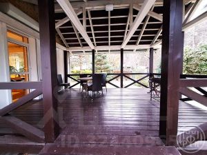 Есть выход на просторную крытую террасу. На первом этаже отдельный туалет и постирочная с душевой кабиной и огромным встроенным шкафом для хранения. Полы - плитка и американский дуб. Великолепная лестница на второй этаж ручной ковки, ступеньки из дуба.