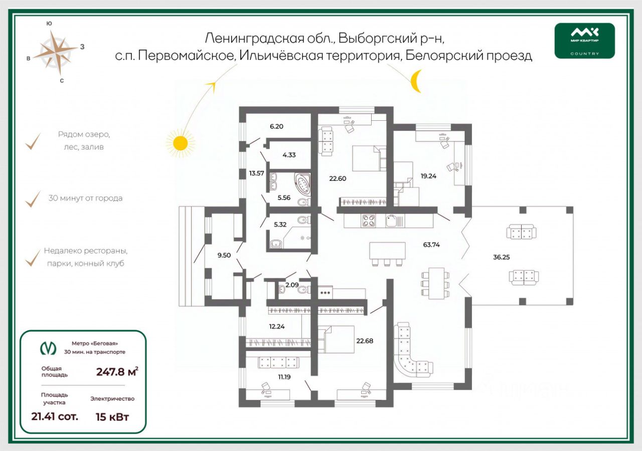 Поселок закрытый на 19 домовладений, просторный огороженный участок 22 сотки, шум от трассы полностью отсутствует, рядом красивый хвойный лес, Симагинское озеро, Новый спортивный комплекс, конный клуб "Северная Усадьба", парк атракционов "Озорные белки", фермерские и строительные магазины, в Ленинском, Ильичево сетевые магазины, школы, аптеки., а таке пляжи и рестораны Курортного района, доставка из ресторана.