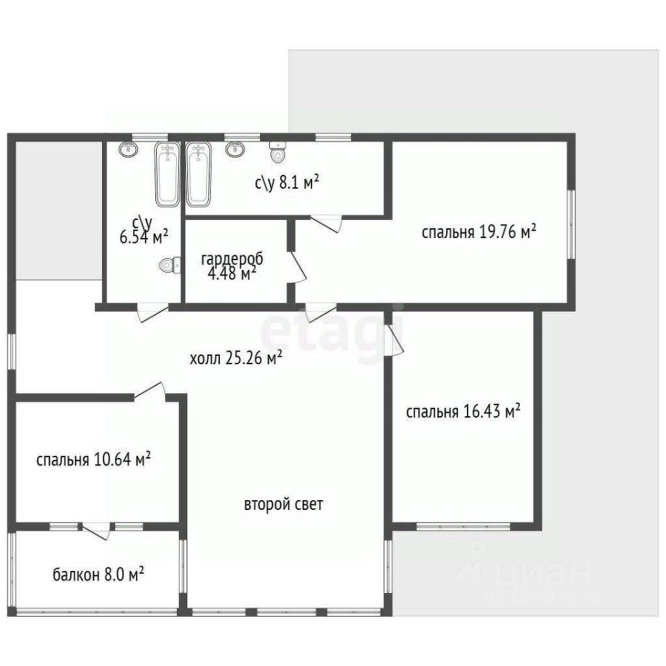 2 этаж (99,2 м²): 3 изолированные комнаты, мастер-спальня с с/у и гардеробной, балкон.