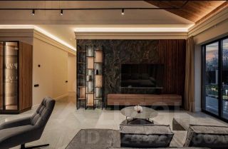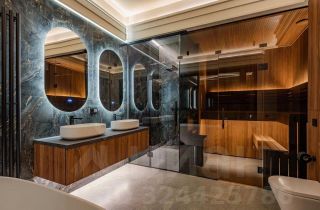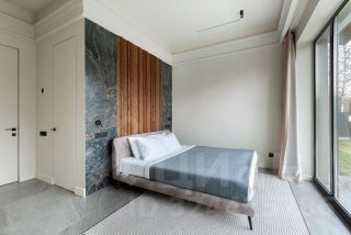 В доме установлена высококачественная сантехника итальянских и немецких брендов. Особенность объекта — обилие естественного света: панорамные окна предусмотрены в каждой комнате, включая ванную, откуда открывается вид на участок.