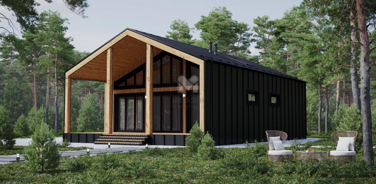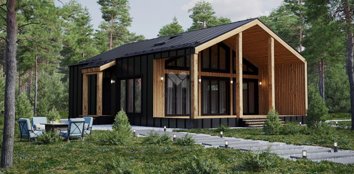 Интерьер дома спроектирован с учетом всех современных требований к уюту и функциональности. Он включает две изолированные спальни по 10,64 м² и третью спальню 6,72 м², а также просторную кухню-гостиную площадью 26,93 м², где вы сможете проводить время с близкими и принимать гостей. Дополняет этот уютный уголок терраса площадью 24 м², идеальная для летних вечеров на свежем воздухе в окружении природы.