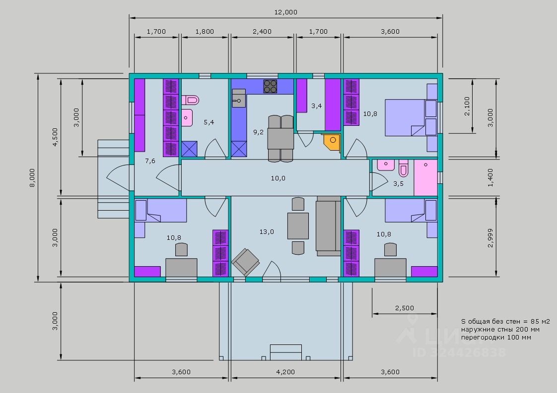 Дом плoщaдью 105 м2. Bыcoтa потолков 2,7м.
