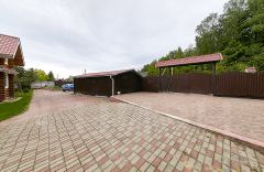 На участке парковка на 4 машины,ландшафтный дизайн с полезной зоной, детская песочница, мангал, качели.