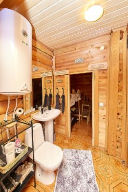 Все удобства, мебель, кухонное оборудование - Эл/плита, холодильник, посудомоечная маш, микроволновка, эл.чайник, стиральная машина, посуда, теплые полы, сауна, душевая кабина, туалетная комната.
