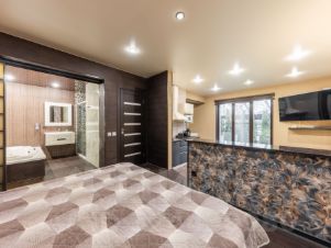 2)одноэтажный дуплекс 100 кв/м . 50 кв/м + 50 кв/м с отдельными входами. В каждом одна спальня, 3 спальных места)