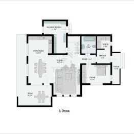 1 этаж - гостиная со вторым светом, кухня-столовая с выходом на большую террасу, изолированная комната, прихожая, гардеробная, котельная, с/у.