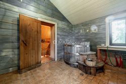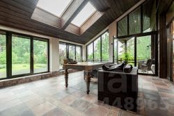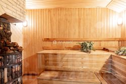 Планировка: Просторные гостиные, кухня-столовая, кабинет, несколько спален с гардеробными, отдельно стоящая баня 86 м2 с купелью.