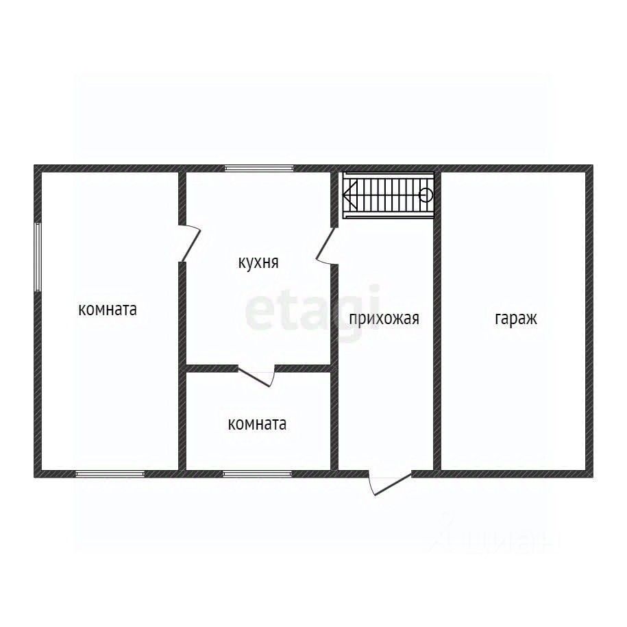 В доме на первом этаже прихожая, кухня, две комнаты.